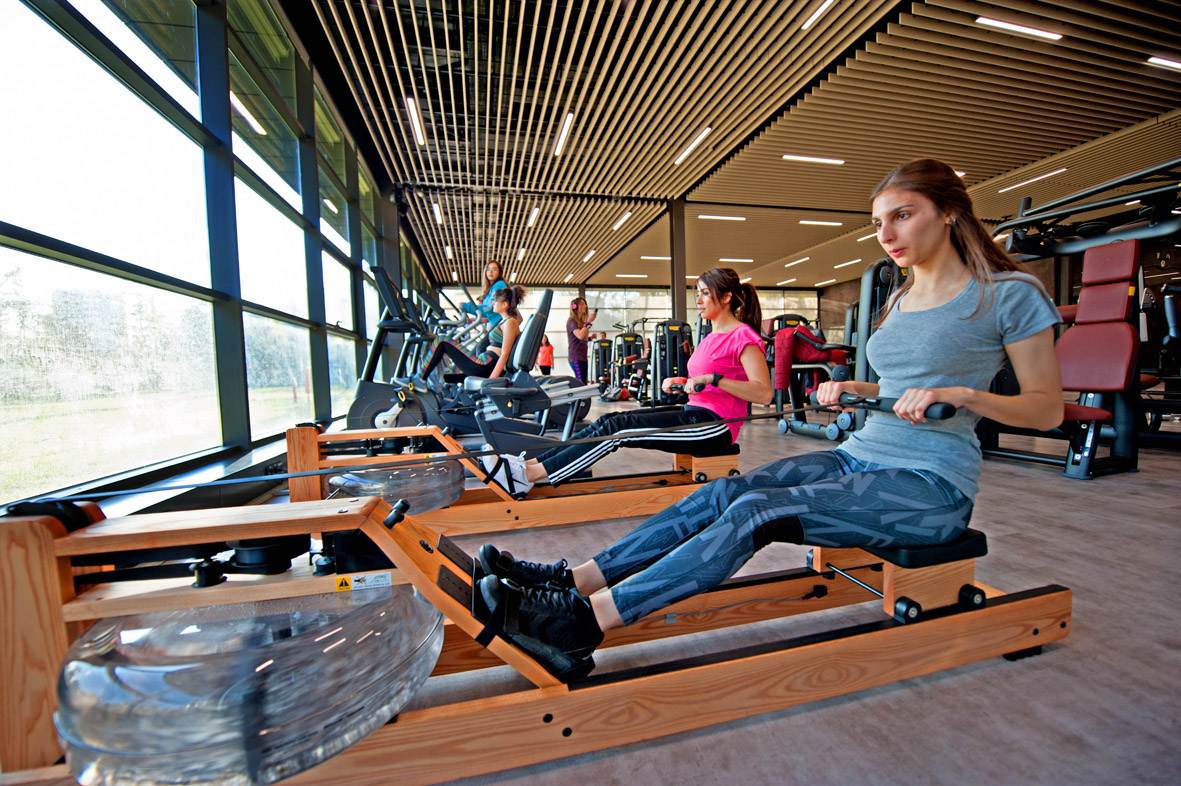 Bunlar; aktivite merkezi içinde, son teknoloji ürünü sabit ağırlık makinalarının, serbest ağırlıkların ve kardio cihazlarının (koşu bandı, bisiklet, cross-trainer, kürek) bulunduğu fitness-kondisyon salonu, step-aerobik, yoga, pilates stüdyosu, uzak doğu sporları stüdyosu (kick-boks, aikido, taekwondo, judo vb. yapılabilecek şekilde düzenlenmiş) ile kampüs içerisinde yeşillikler arasında yürüyüş ve bisiklet parkurları yer almaktadır.